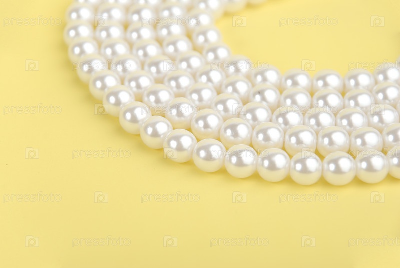 Жемчужное ожерелье изолировано на желтом фоне
