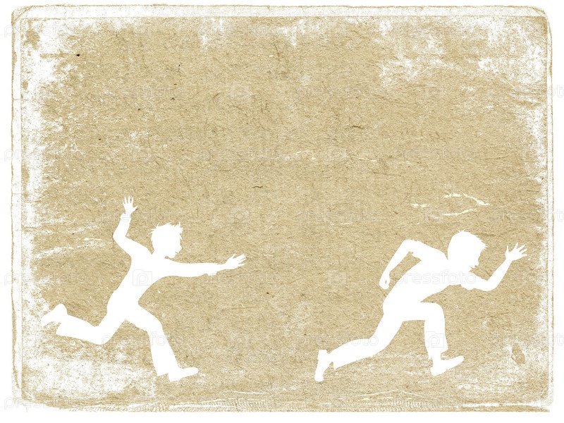 Силуэты бегущих мальчиков на старой бумаге