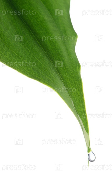 Капля на зеленом листе крупным планом