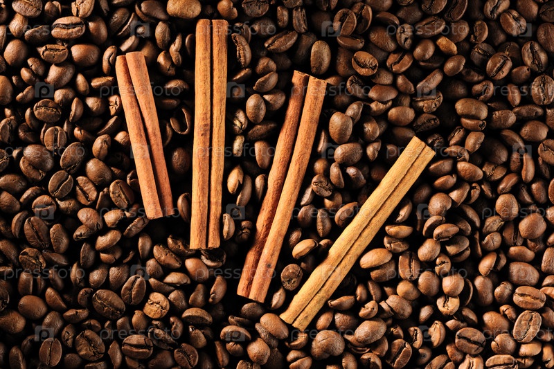 Кофейные зерна и корица крупным планом