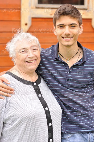Внук с бабушкой около дома