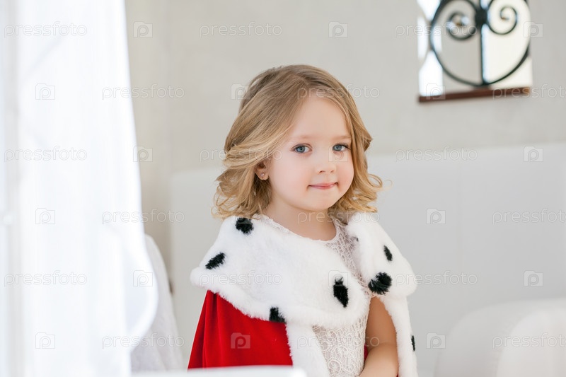Красивая голубоглазая девочка в королевской мантии
