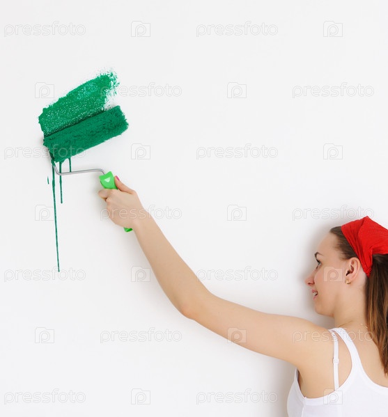 Покраска стен дома с помощью валика