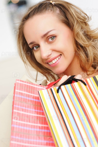 Женщина с пакетами, в торговом центре