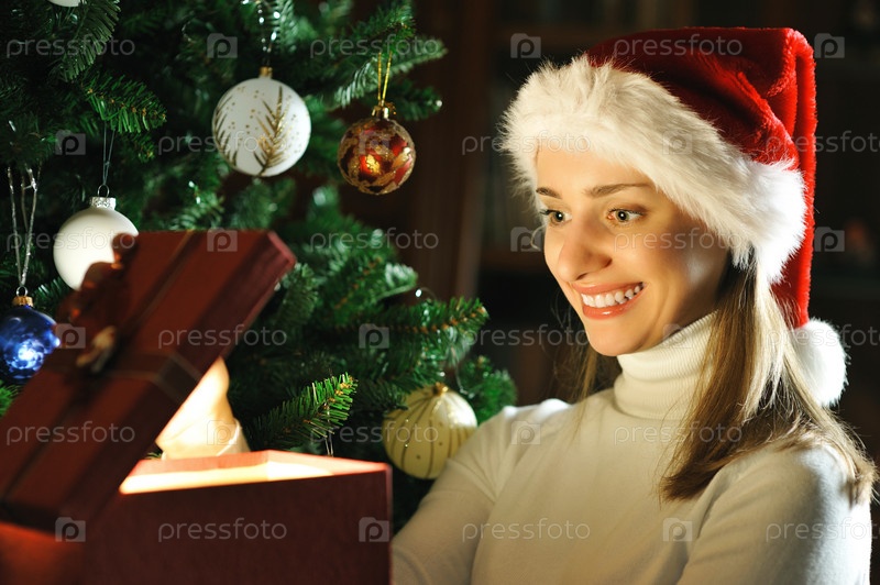 Молодая женщина с Рождественским подарком