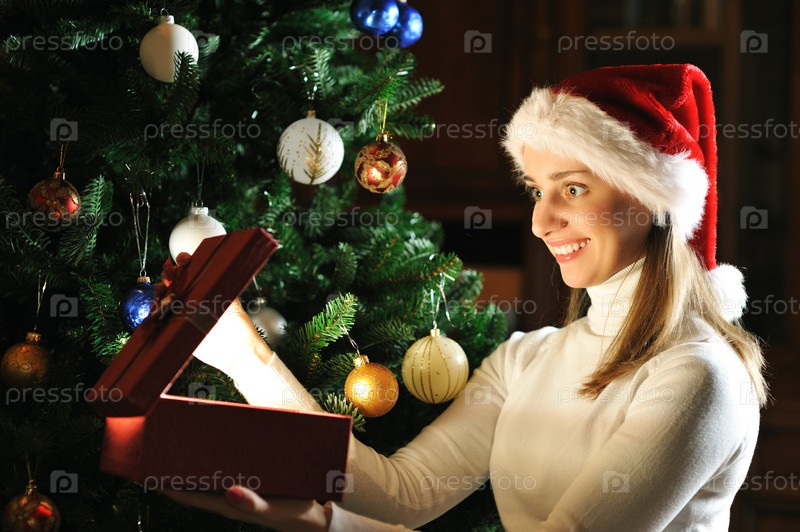 Молодая женщина с Рождественским подарком