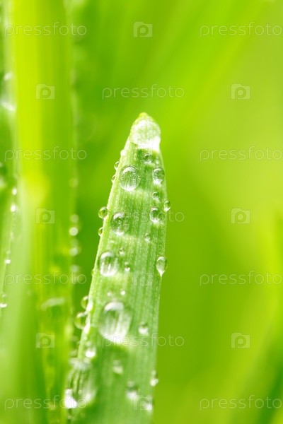Зеленая трава в каплях дождя