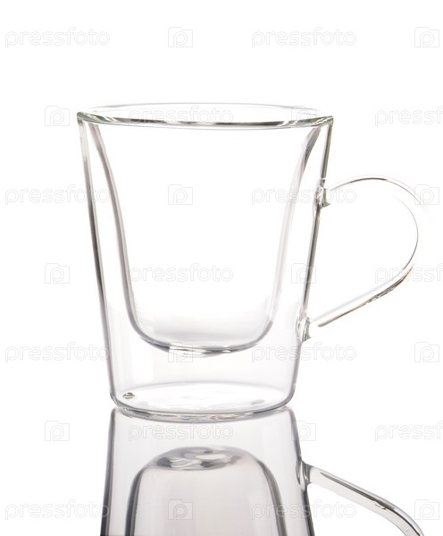 Пустой стакан на белом фоне с отражением