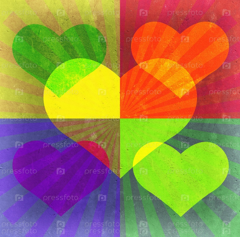 Сердечки и 4 разноцветных квадрата