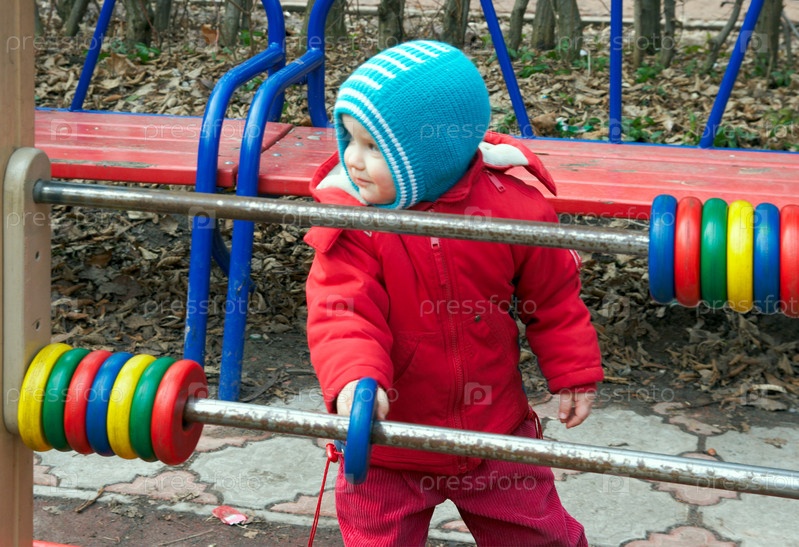 Мальчик учится считать на счетах на детской площадке