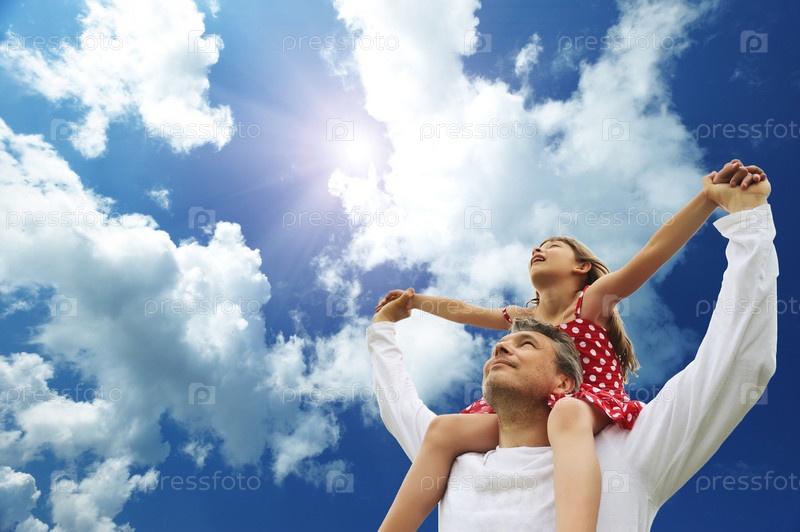 Отец и дочь на фоне неба