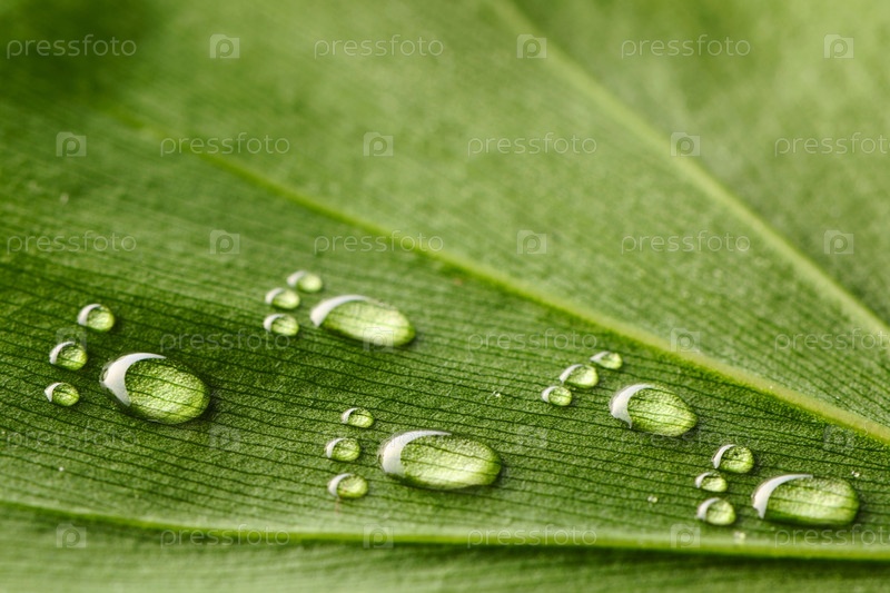 Красивые водные отпечатки на листике крупным планом