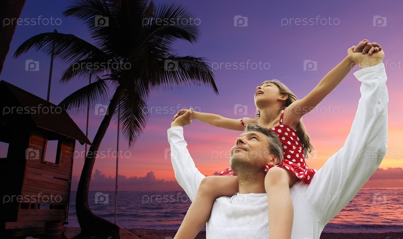 Отец и дочь на фоне неба