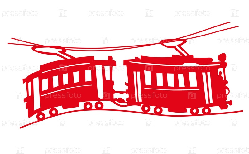 Красный трамвай на белом фоне