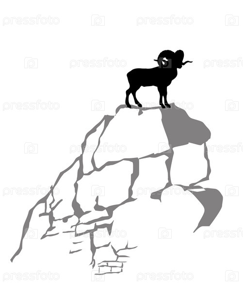 Горный баран на белом фоне