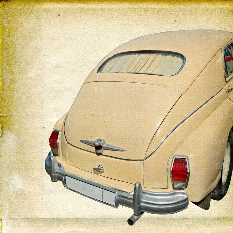 Задний вид автомобиля на фоне старой бумаги