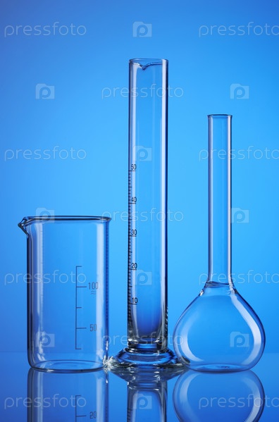 Химические колбы на синем фоне