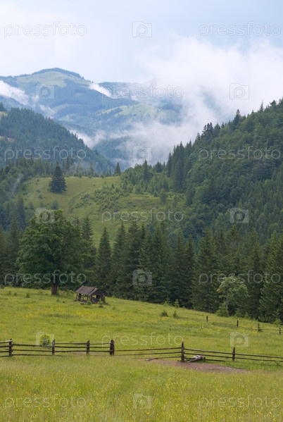 Утренний туман в Карпатских горах, Украина