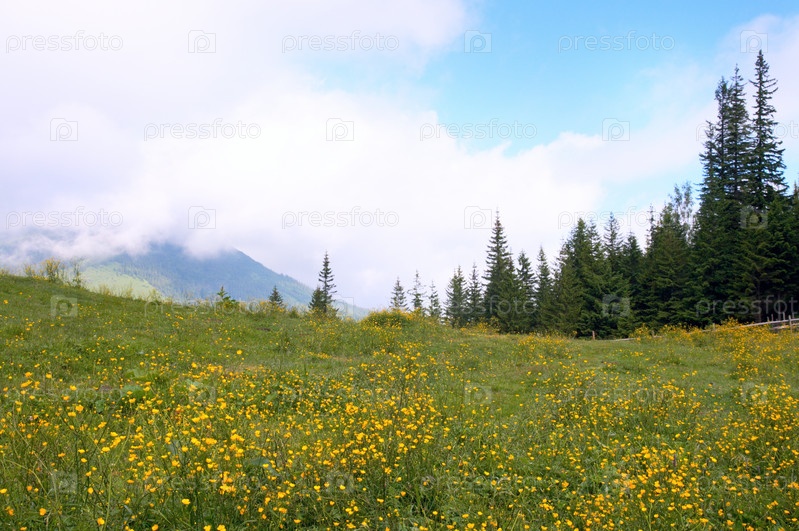 Утренний туман в Карпатских горах, Украина