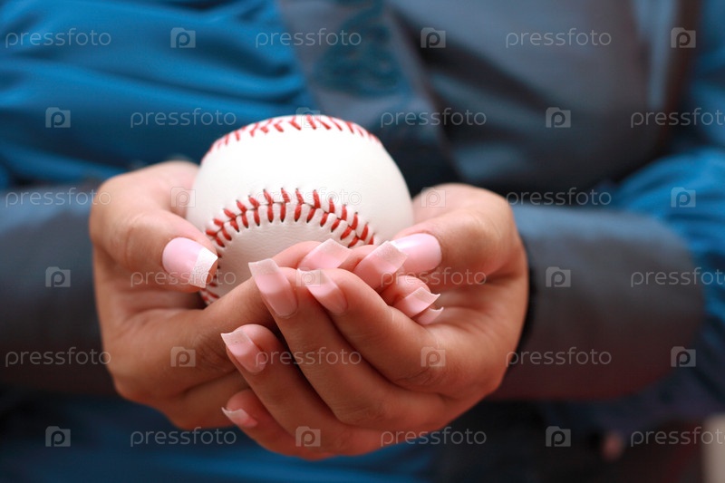 Бейсбольный мяч в руке женщины