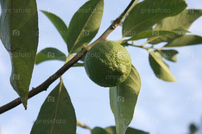 Зеленый Лимон на ветке