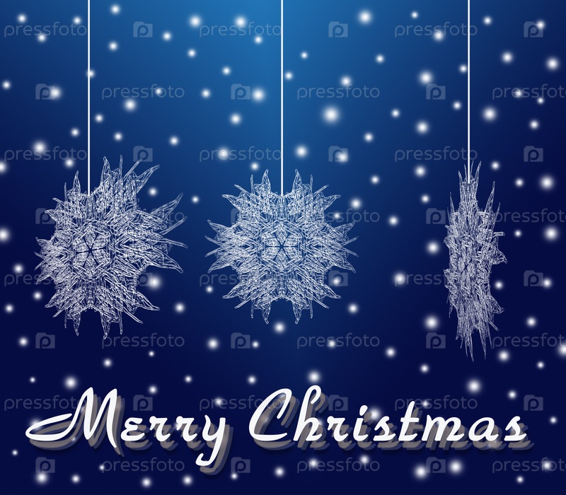 Снежинки на синем фоне с надписью счастливого Рождества