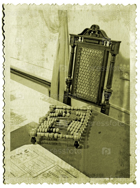 Деревянные счеты на старой фотографии