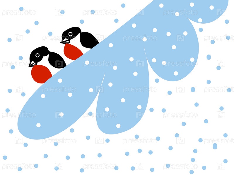 Два снегиря на заснеженной ветке
