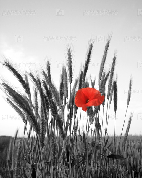 Красный мак на фоне колосьев пшеницы