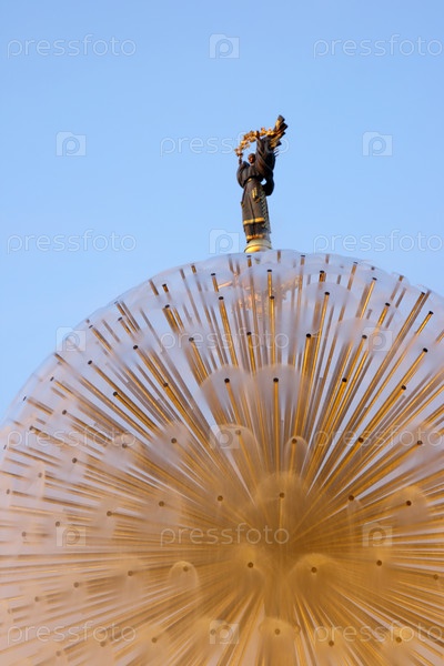Шаровидный фонтан и скульптура позади него на площади Независимости (Киев, Украина)