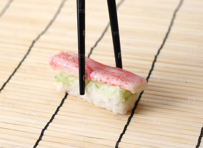 Суши ролл с черными палочками