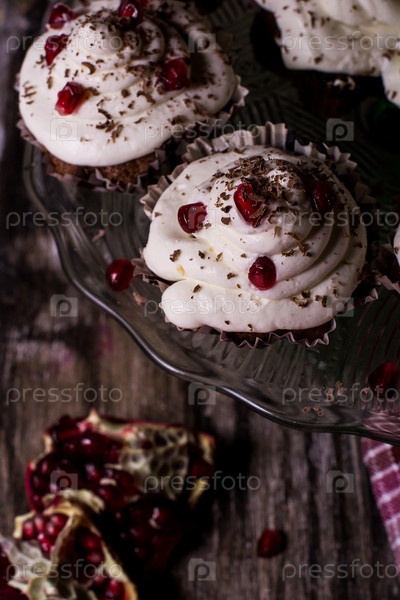 Шоколадный торт покрыт сливочное масло и граната семена