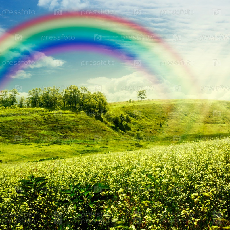 Радуга на лугу. Абстрактные естественный фон для вашего дизайна
