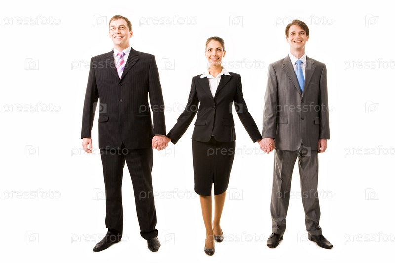 Команда из трех бизнесменов, держащих друг друга за руки