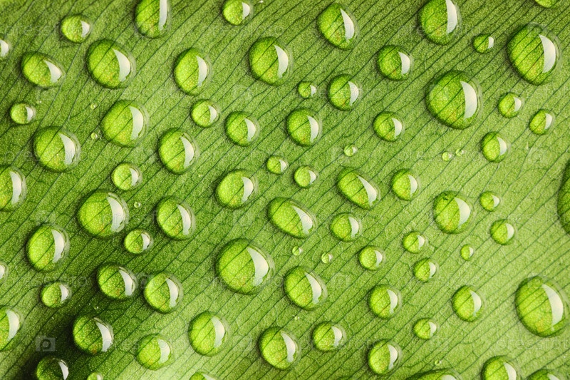 Капли на зеленом листе крупным планом