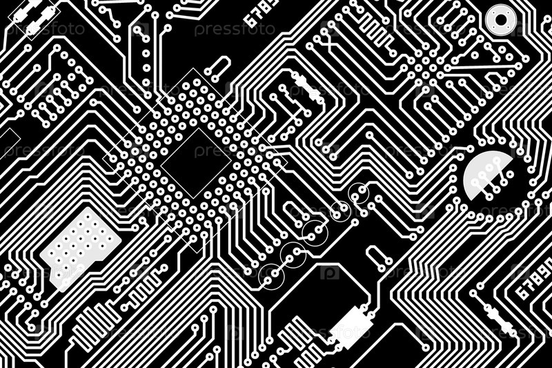Графический фон - белые электронные компоненты на черном фоне
