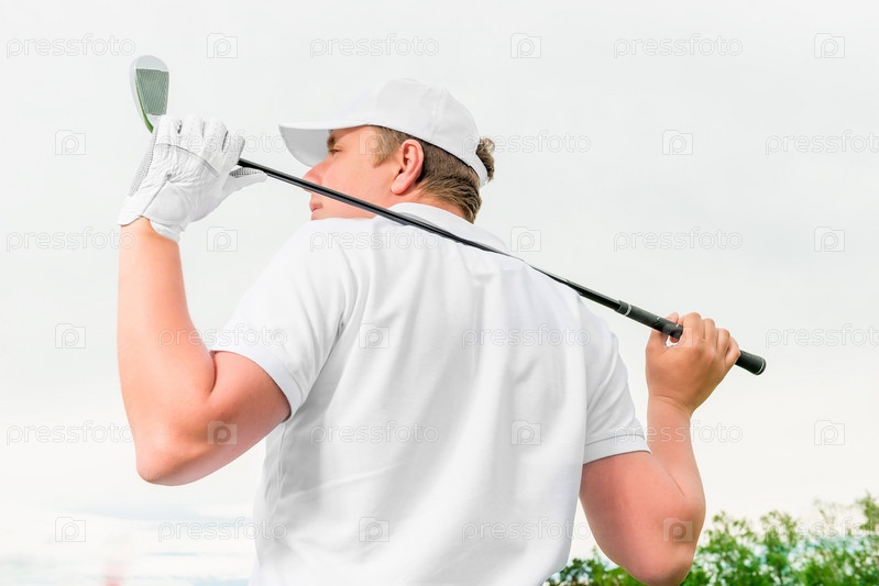 Человек, держащий гольф-клуба за его спиной