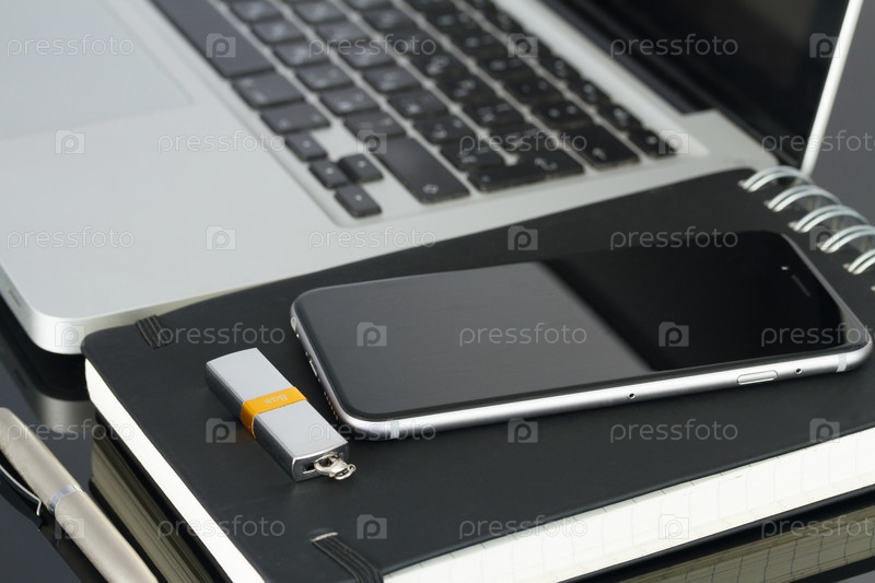 Стол офисный с ноутбука, телефона и компьютера