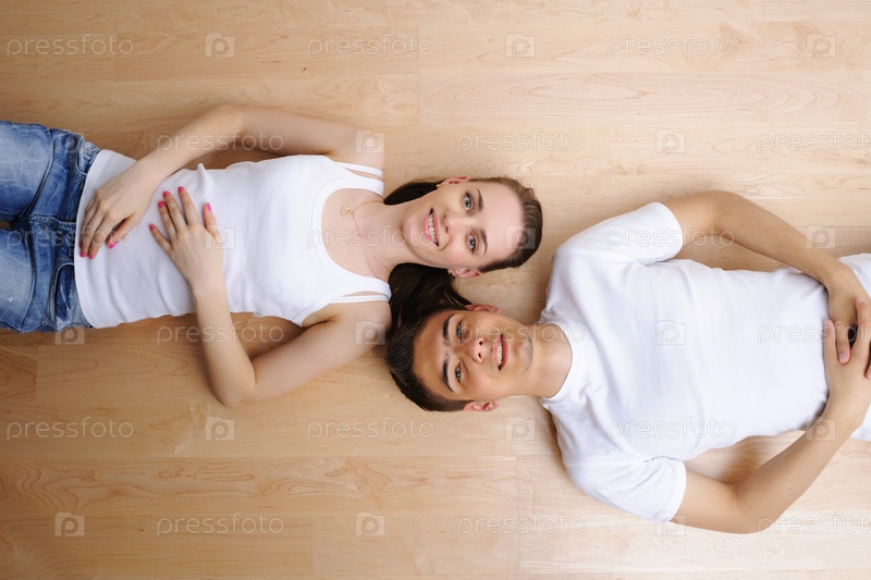 Молодая пара отдыхает от переезда в новый дом