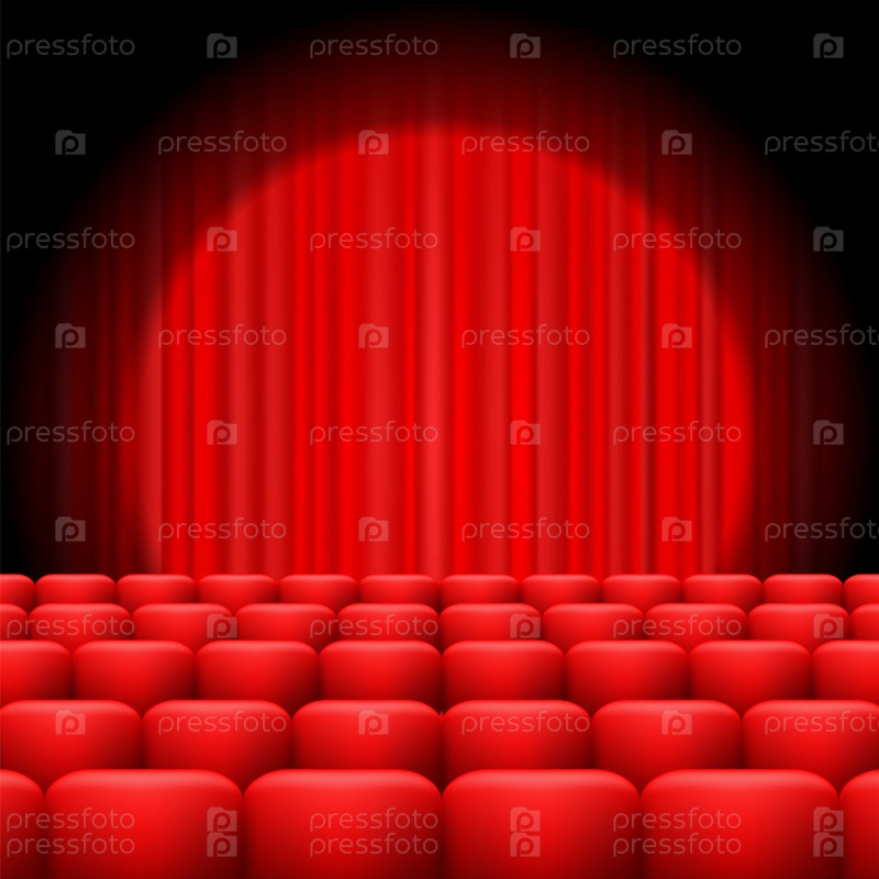 Красные шторы с помощью прожектора