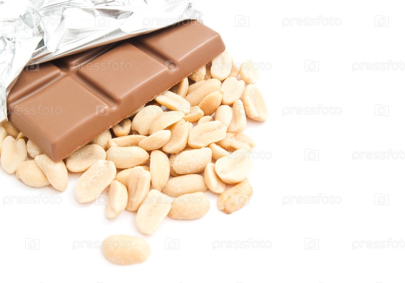 Шоколад и некоторые арахис на белом