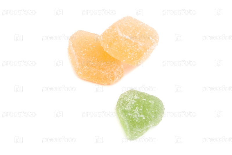 Три конфеты сладкие фрукты на белом фоне