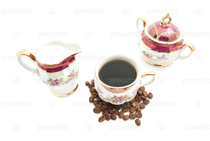 Кофе в зернах, кофе и сахарница