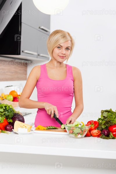 Девушка готовит салат