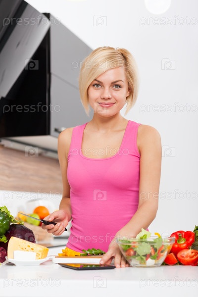 Девушка готовит салат