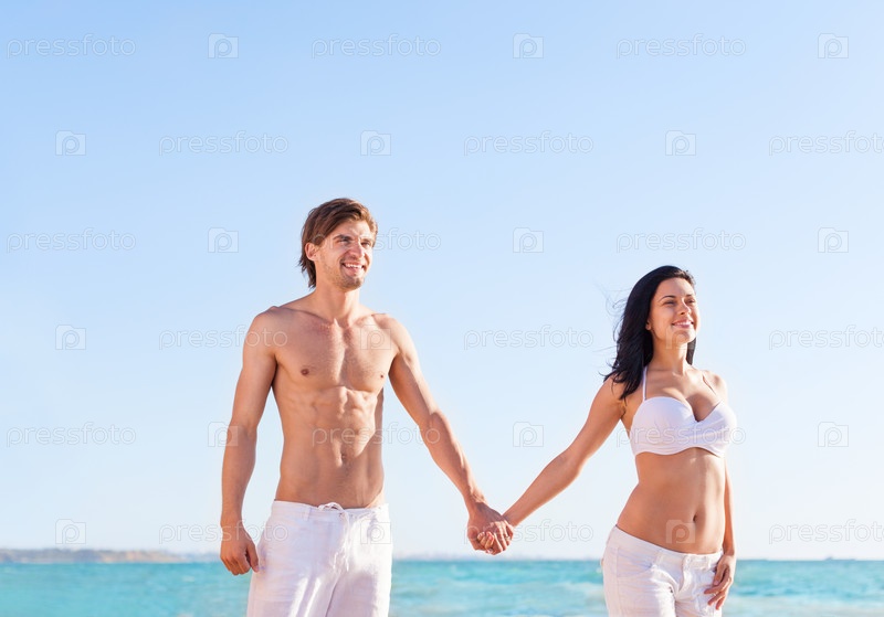 Счастливая пара на пляже