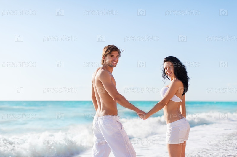 Счастливая пара на пляже