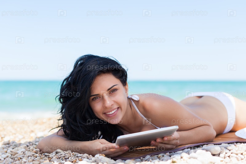 Красивая девушка в белом купальнике