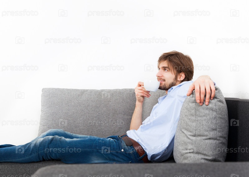 Мужчина отдыхает на диване