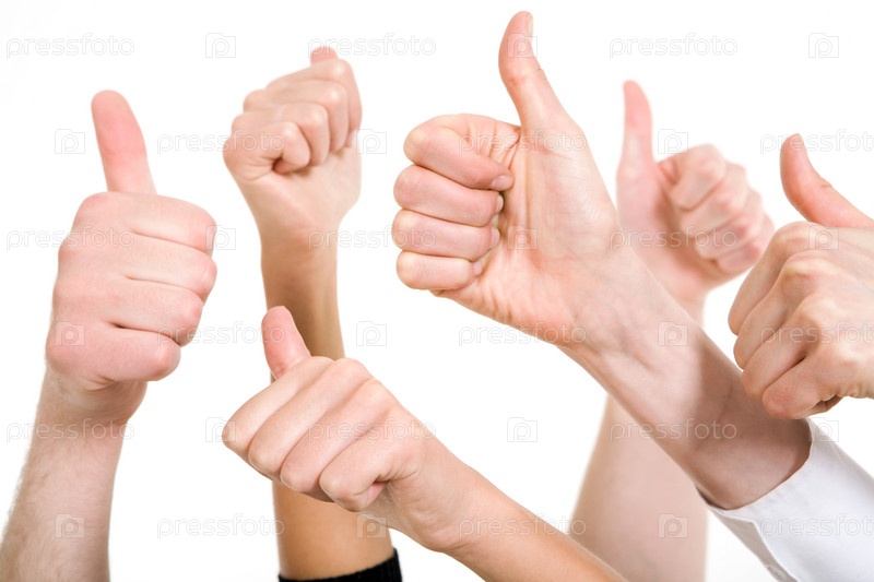 Линия группы человеческих кулаков, держащих большие пальцы вверх